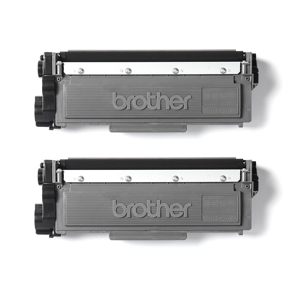 La confezione di toner nero ad alta capacità originale Brother TN-2320TWIN offre 2 cartucce di toner nero in un'unica pratica confezione, ciascuna delle quali stampa fino a 2.600 pagine.