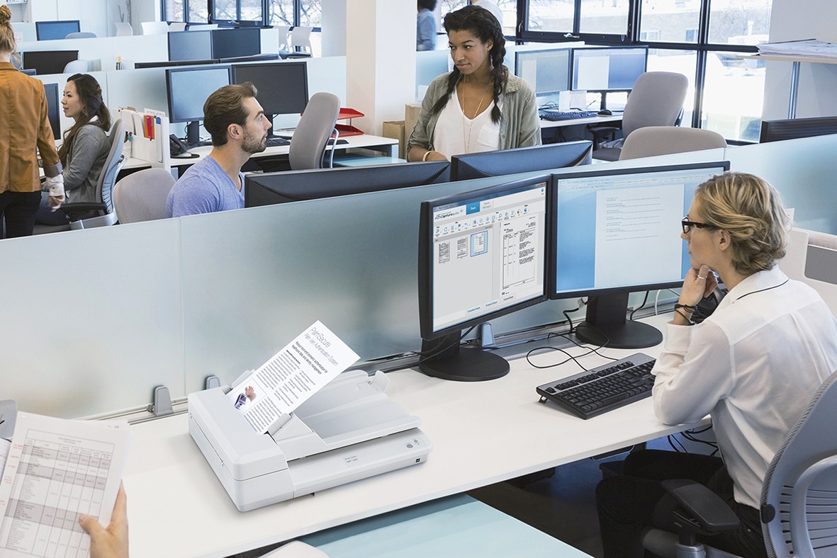 Passa dai documenti fisici a quelli elettronici con la semplicità digitale della SP-1425. Tramite la fusione dei documenti acquisiti con quelli creati direttamente in formato digitale, è possibile ottenere un’unica fonte di riferimento per tutti i dati. Ottieni i vantaggi aziendali derivanti dall’uso di immagini digitali più comode, flessibili e sicure utilizzando routine semplici come premere un pulsante. La SP-1425 è caratterizzata da un pannello operativo semplice dotato di due soli pulsanti (scansione/ arresto e accensione/spegnimento) e dalla gestione dei pulsanti tramite software.