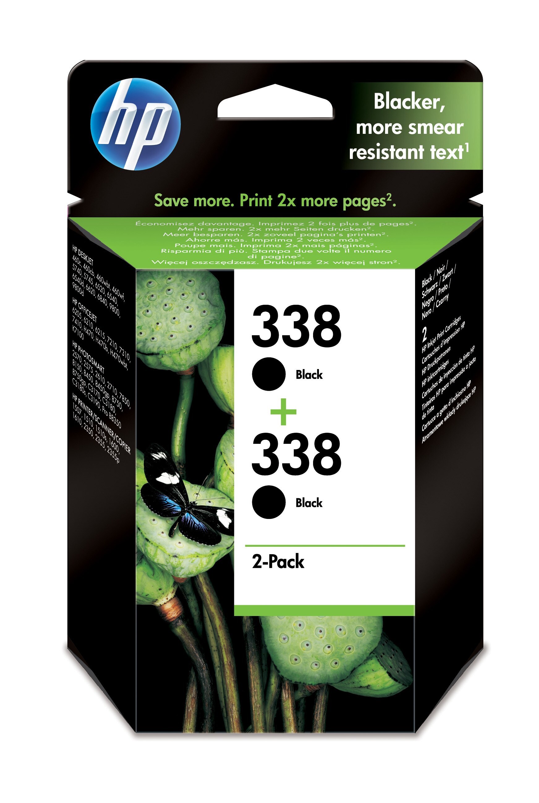 HP 338. Tipo di inchiostro: Inchiostro a base di pigmento, Tipo di cartuccia: Resa elevata (XL), Tipo di fornitura: Confezione multipla, Quantità per pacco: 2 pz, Resa in pagine dell'inchiostro a colori: 480 pagine