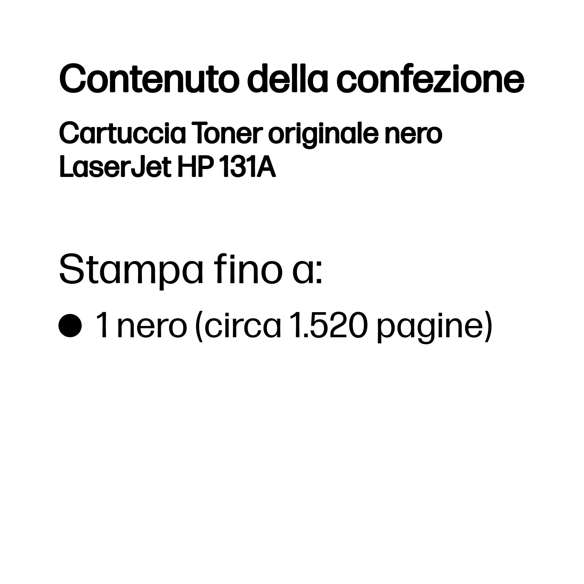 HP Cartuccia Toner originale nero LaserJet 131A. Resa in pagine del toner nero: 1520 pagine, Colori di stampa: Nero, Quantità per pacco: 1 pz