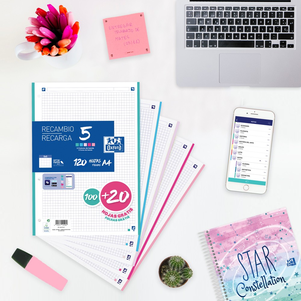 Ricarica Oxford termoretraibile in una confezione da 120 fogli con 5 colori a fascia pastello e 4 fori per archiviare i fogli in un classificatore o raccoglitore ad anelli. Ideale per chi preferisce i fogli singoli e prende solo quelli di cui ha bisogno. Puoi organizzarti per utilizzare un colore per soggetto o argomento. Compatibile con l'app gratuita Scribzee che ti permette di organizzare, consultare, condividere e accedere ai tuoi appunti ovunque dal tuo Smartphone, tablet o PC.