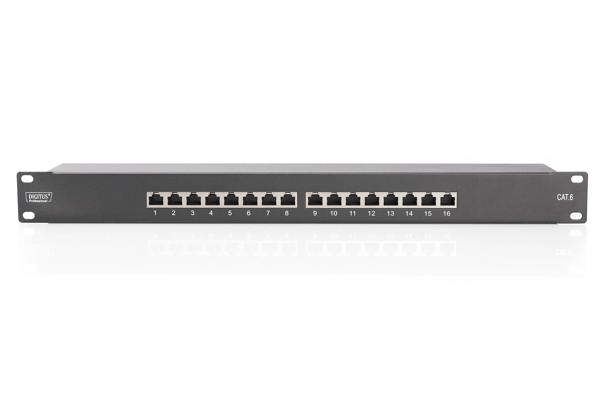 Digitus Pannello Patch Classe E, CAT 6. Standard di rete: IEEE 802.3af, IEEE 802.3at, Connettore: RJ-45, Placcatura contatti: Oro. Colore del prodotto: Nero, Materiali: Acciaio galvanizzato, Montaggio: Montaggio a rack. Larghezza imballo: 500 mm, Profondità imballo: 135 mm, Peso dell'imballo: 1,06 kg. Paese di origine: Cina