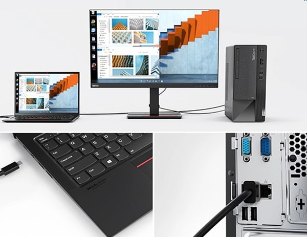 Con il desktop Tower professionale ThinkCentre Neo 50t di quarta generazione la collaborazione è semplice e veloce. La connettività cablata e wireless, fino a Wi-Fi 6, rende facilissima la condivisione dei progetti. Le riunioni da remoto sono un gioco da ragazzi grazie a Windows 11 Pro e all'integrazione di Microsoft Teams. Collegando un cavo smart opzionale le possibilità sono infinite, dalla connessione a un altro PC all'uso dello storage e di altri componenti.