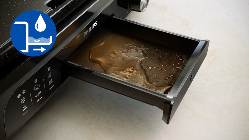 Il grasso si scioglie e viene raccolto nel vassoio antigoccia rimovibile.