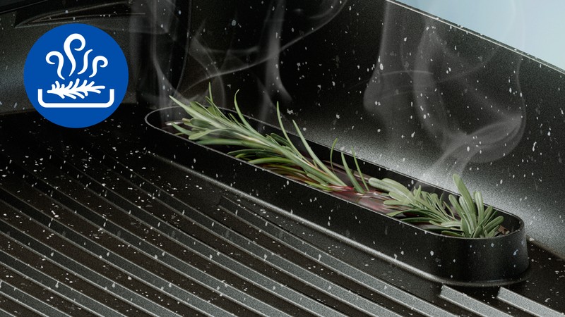 Aggiungi trucioli di legno e chiudi il coperchio per infondere alla carne e al pesce un sapore affumicato di barbecue.