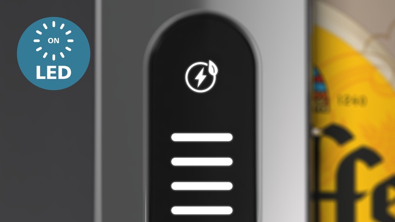 Il display LED mostra quando la birra è alla temperatura perfetta, quanta ne è rimasta nel fusto e per quanto resterà fresca.