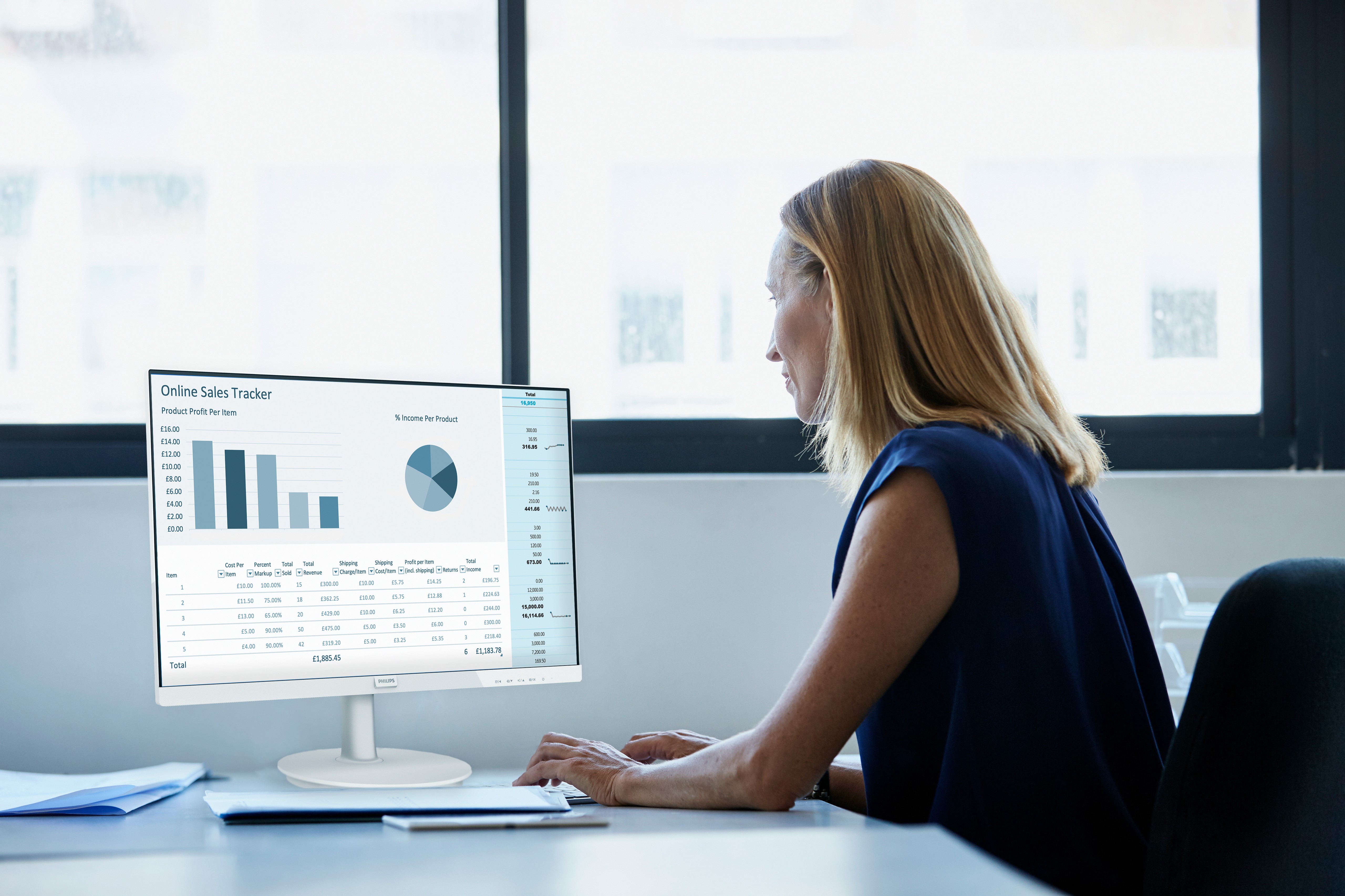 Il monitor Philips V-Line con ampio angolo di visualizzazione offre una visione oltre ogni limite, una qualità elevata e funzioni essenziali. La sincronizzazione adattiva assicura una visualizzazione video fluida. Caratteristiche quali antiriflesso, modalità LowBlue e immagini prive di sfarfallio non affaticano gli occhi.