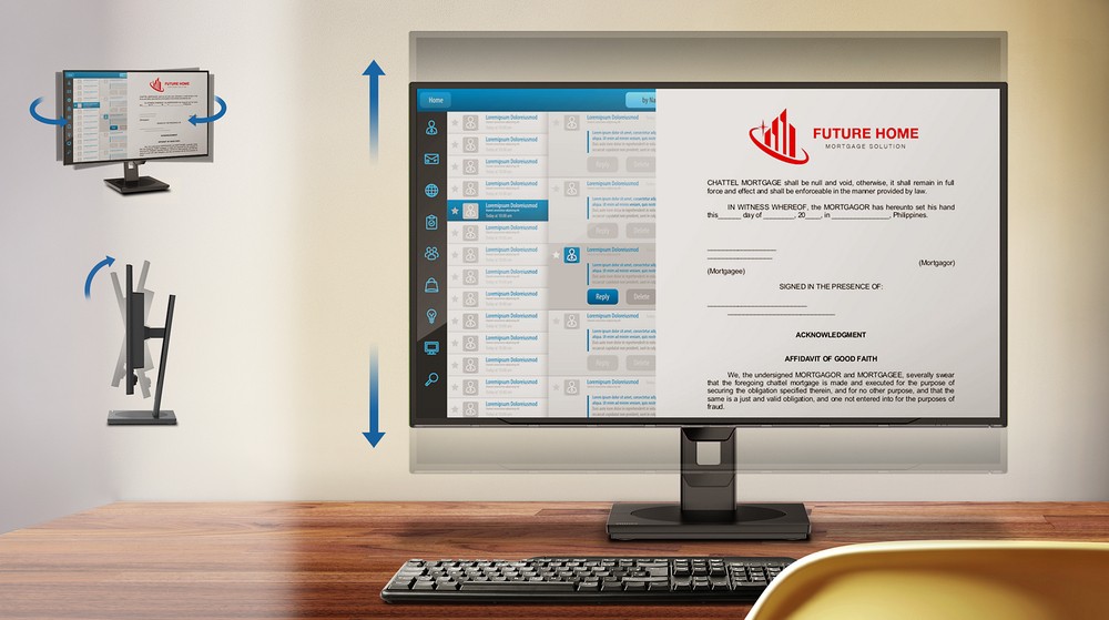 Inclinabile, girevole e ad altezza regolabile per il massimo comfort visivo