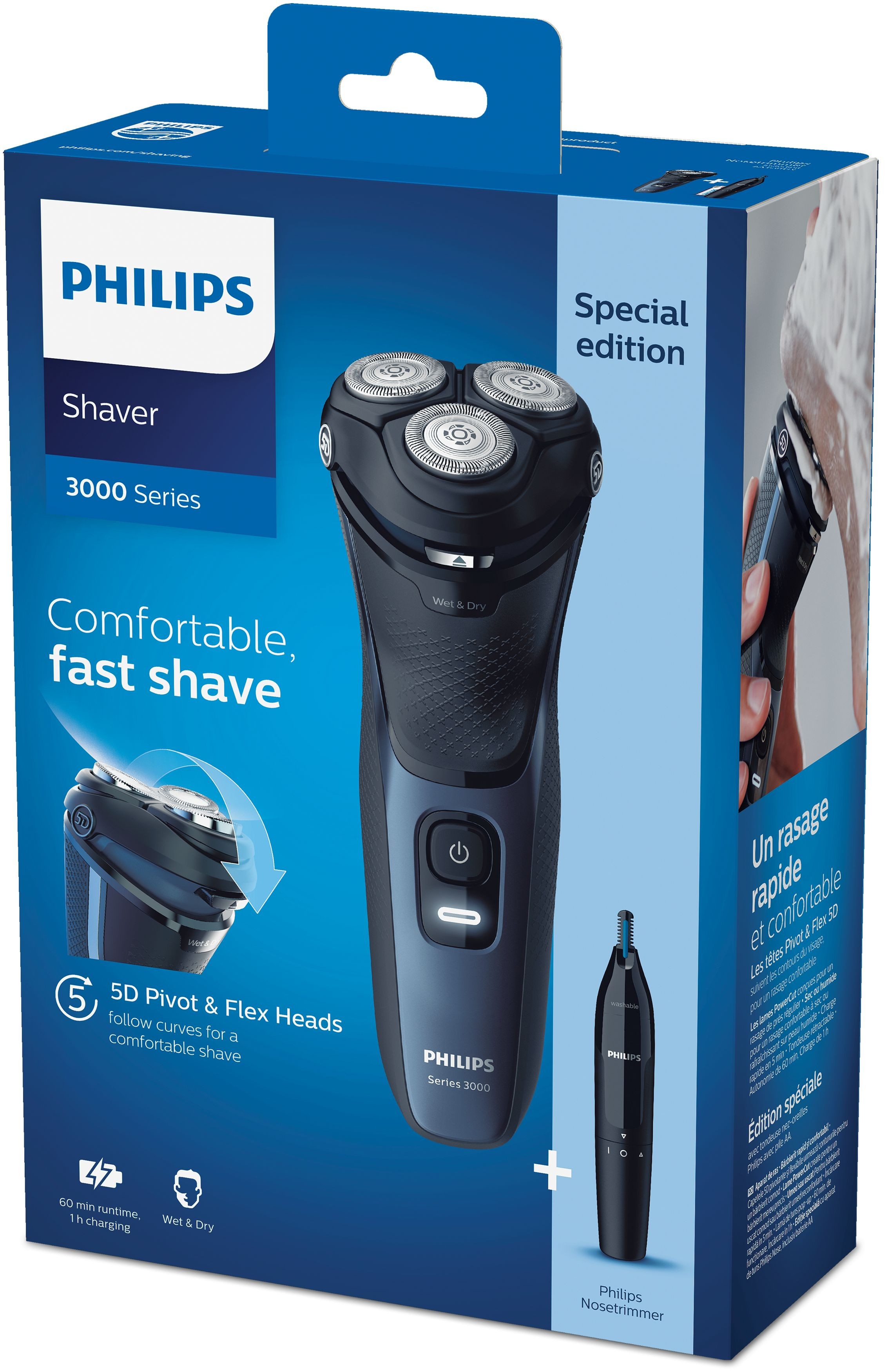 I rasoi Philips serie 3xxx ti offrono una rasatura pratica e confortevole. Le testine Pivot & Flex 5D, le lame PowerCut e la funzione Wet & Dry offrono un risultato pulito e ordinato.