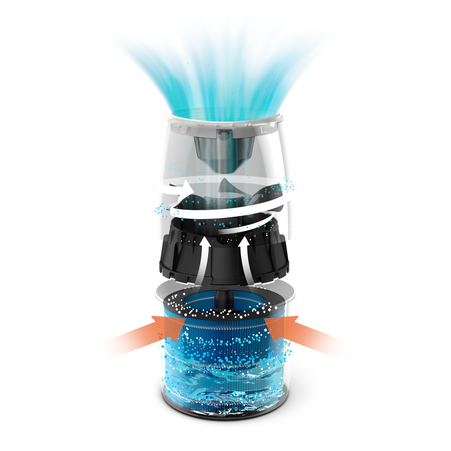 L'esclusiva tecnologia NanoCloud utilizza l'evaporazione naturale per emettere vapore acqueo puro. Le particelle ultrafini della tecnologia NanoCloud sono invisibili all'occhio ed è estremamente difficile che i batteri e i residui possano attaccarvisi; consente di umidificare l'aria rilasciando il 99% in meno di batteri rispetto agli umidificatori ultrasonici standard. (1)
