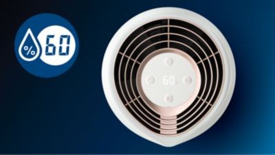 Un sensore di umidità intelligente monitora l'aria ed esegue la regolazione automatica per mantenere l'umidità al livello desiderato: 40%, 50% o 60%. Un indicatore del livello dell'acqua segnala quando è necessario riempire il serbatoio e l'umidificatore si spegne automaticamente quando l'acqua si esaurisce.