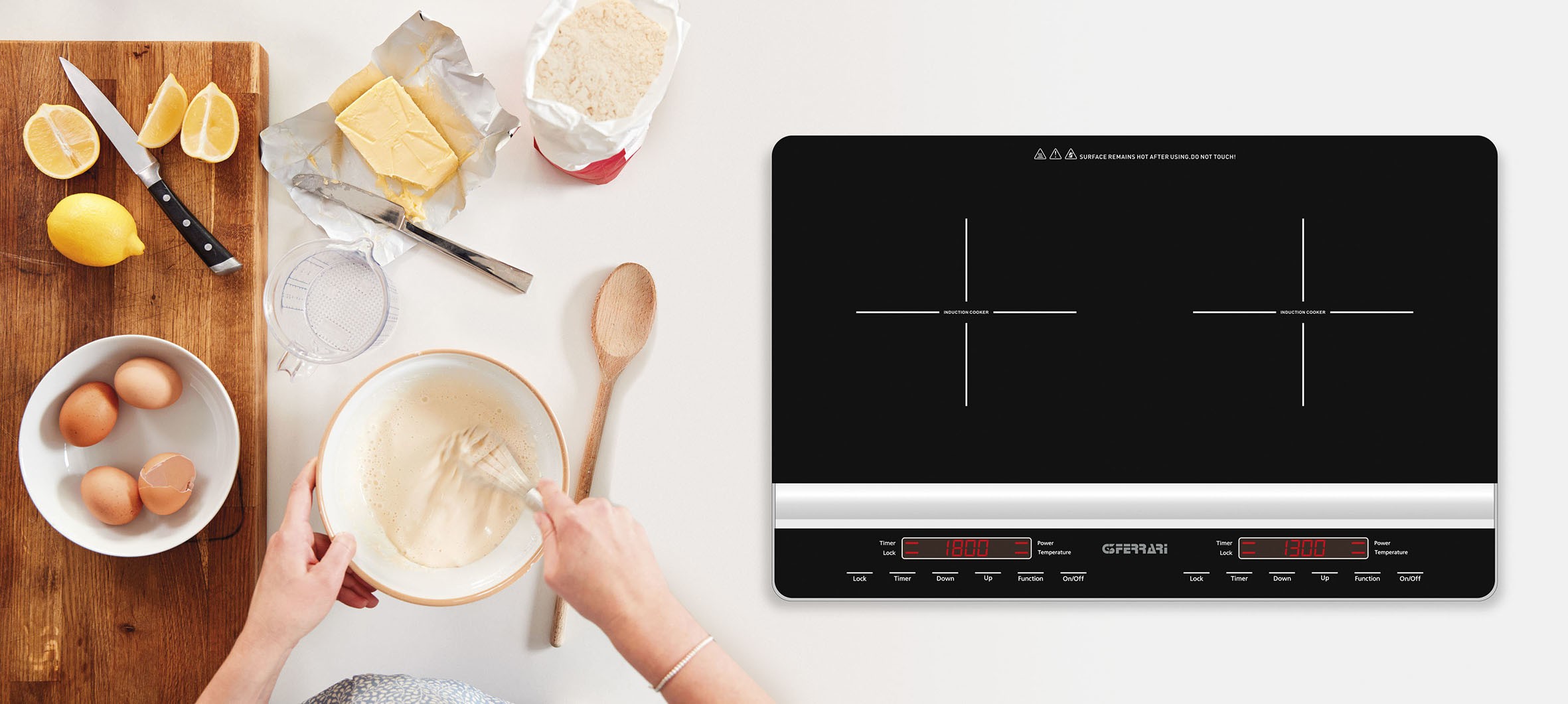 La cottura per induzione avviene attraverso un campo magnetico indotto che interagisce con la base della pentola e la riscalda. Questa tecnica apporta notevoli benefici in termini di ecologia ed economia: tutta l’energia viene trasferita alla pentola riducendo al minimo le dispersioni di calore e diminuendo i tempi di cottura degli alimenti. Dinamiko Duo è un piano cottura a induzione doppio con un’ampia area di cottura ideale per pentole da 12 a 26 cm. La superficie è composta da un vetro unico, molto semplice da pulire. Entrambe le piastre hanno potenza regolabile: da 200 a 1800W per la grande e da 200 a 1300W la piccola. E’ anche possibile impostare la temperatura da 60 a 240°C e il tempo da 0 a 3 ore. Per la vostra sicurezza, è dotato di sistema anti-surriscaldamento e di spegnimento automatico in caso di pentola errata, vuota o assente. Il design super-sottile conferisce a Dinamiko Duo una linea elegante e moderna.