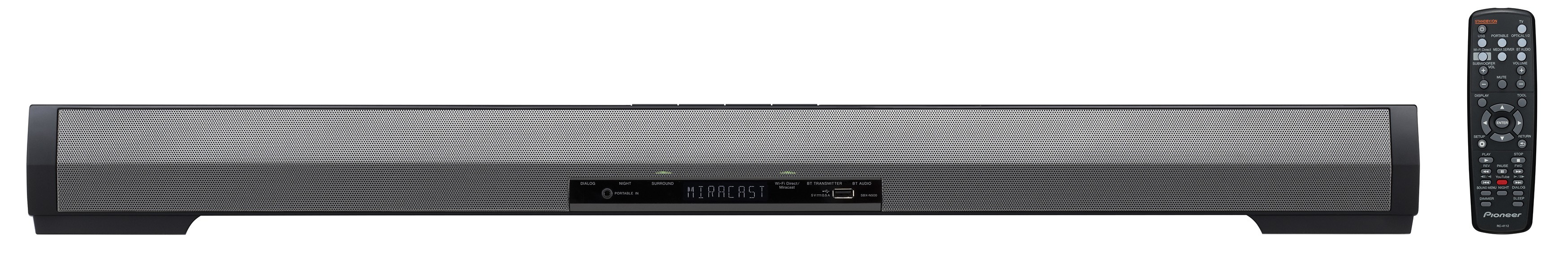 Pioneer SBX-N500. Potenza in uscita (RMS): 140 W, Formato audio integrato: Dolby Digital,DTS. Tecnologia di connessione: Con cavo e senza cavo. Profili Bluetooth: A2DP,AVRCP. Tensione di ingresso AC: 110-240, Frequenza di ingresso AC: 50/60, Consumi (modalità stand-by): 0,5 W. peso soundbar: 4,4 kg