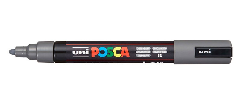 POSCA PC-5M Grigio scuro, Grigio, Multicolore, Deep Grey, 1 colori, Medio, Inchiostro a base di acqua