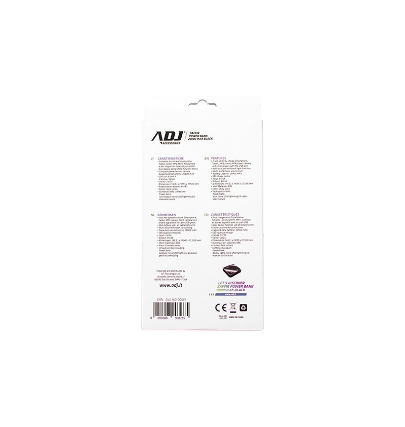 Adj Zaffir, 20000 mAh, Ioni di Litio, Nero