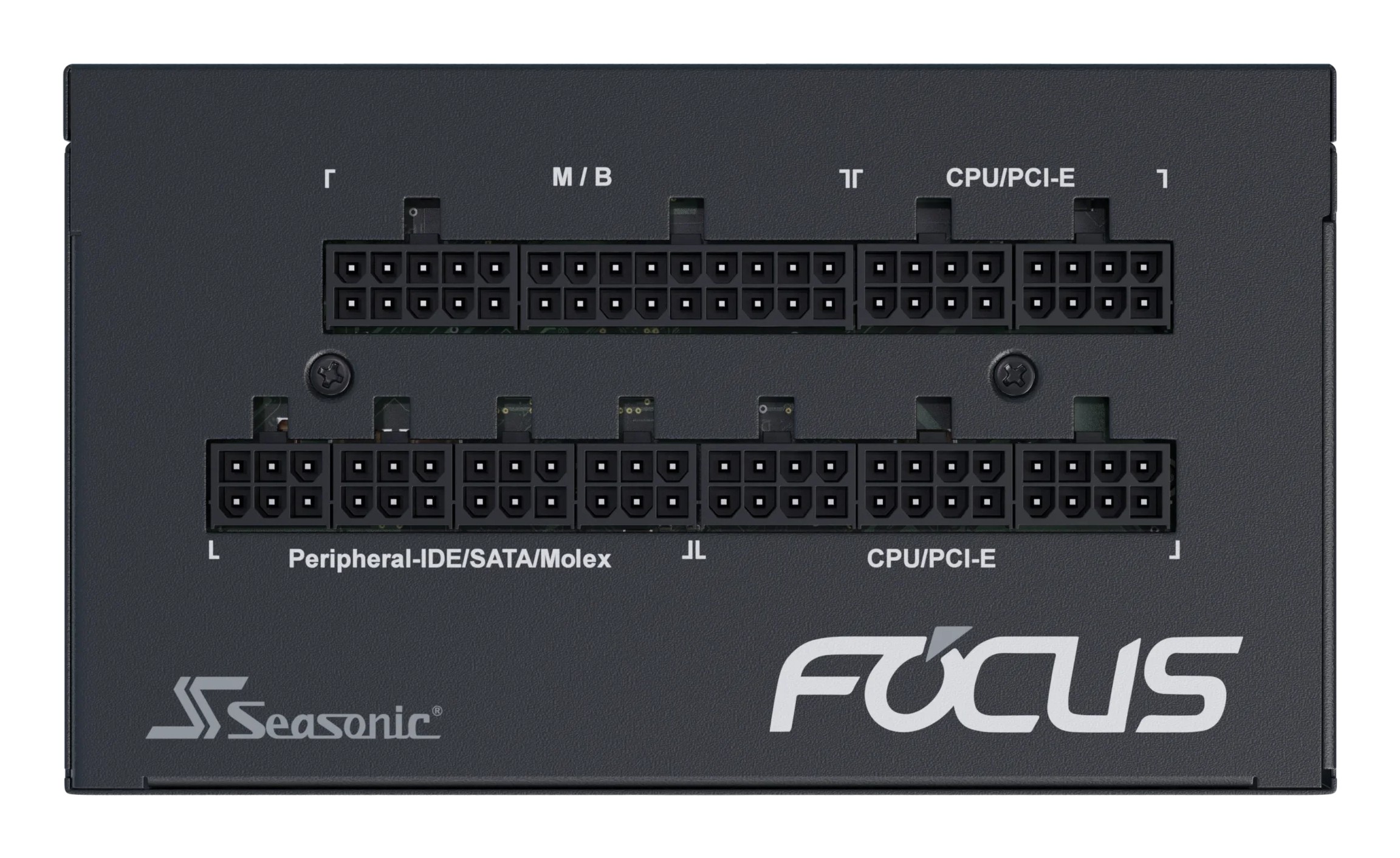 Seasonic Focus GX. Potenza totale: 850 W, Tensione di ingresso AC: 100 - 240 V, Frequenza di ingresso AC: 50/60 Hz. Connettore scheda madre: 20+4 pin ATX, Lunghezza del cavo di alimentazione della scheda madre: 61 cm, Lunghezza del cavo di alimentazione SATA: 450,810,860 mm. Utilizzo: PC, Fattore di forma dell'unità di alimentazione (PSU): ATX, Certificazione 80 PLUS: 80 PLUS Gold. Colore del prodotto: Nero, Tipo di raffreddamento: Attivo, Diametro del ventilatore: 12 cm. Cavi inclusi: AC, CPU, PCIe, Peripheral (Molex), Peripheral (Molex) to SATA 3.3, SATA