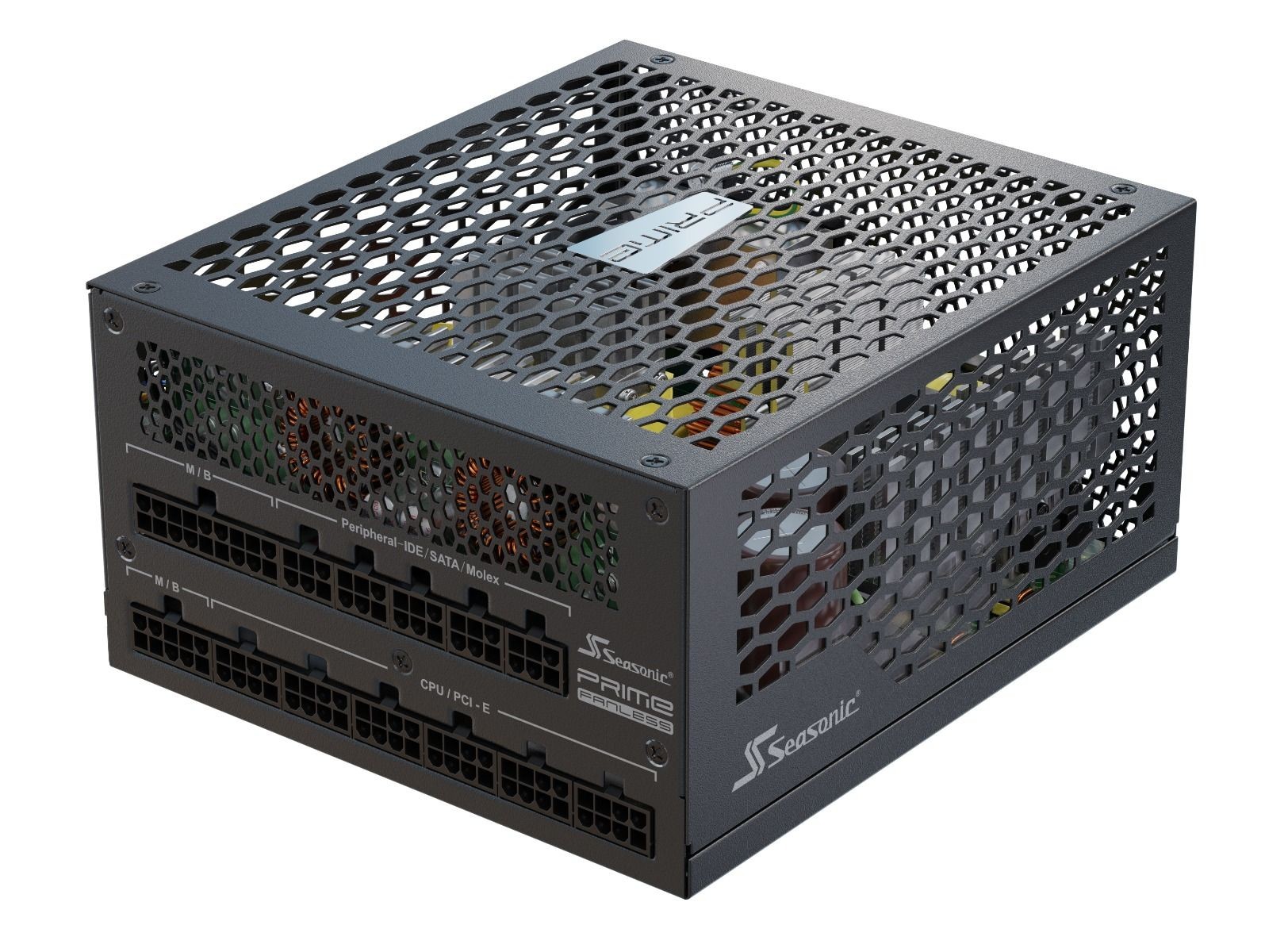 Seasonic PRIME Fanless TX. Potenza totale: 700 W, Tensione di ingresso AC: 100 - 240 V, Frequenza di ingresso AC: 50 - 60 Hz. Connettore scheda madre: 20+4 pin ATX, Lunghezza del cavo di alimentazione della scheda madre: 61 cm, Lunghezza del cavo di alimentazione SATA: 450,800,810 mm. Utilizzo: PC, Fattore di forma dell'unità di alimentazione (PSU): ATX, Certificazione 80 PLUS: 80 PLUS Titanium. Colore del prodotto: Nero, Tipo di raffreddamento: Passivo. Larghezza: 150 mm, Profondità: 170 mm, Altezza: 86 mm
