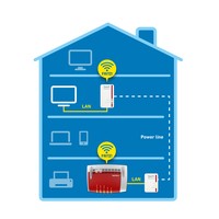 Il FRITZ!Powerline 540E dispone di un punto di accesso wireless indipendente. Ciò consente di ampliare facilmente la rete wireless del FRITZ!Box via powerline e di renderla disponibile anche nelle stanze più lontane. La massima sicurezza data dalla codifica WPA2, il collegamento semplice di dispositivi wireless via WPS (Wi-Fi Protected Setup ), le velocità di trasferimento che raggiungono i 300 Mbit/s e MIMO (maggiore portata per le velocità di trasferimento richieste), fanno in modo che il FRITZ!Powerline 540E possa offrire una flessibilità e un comfort insuperabili per navigare senza fili e usufruire al massimo della rete domestica.