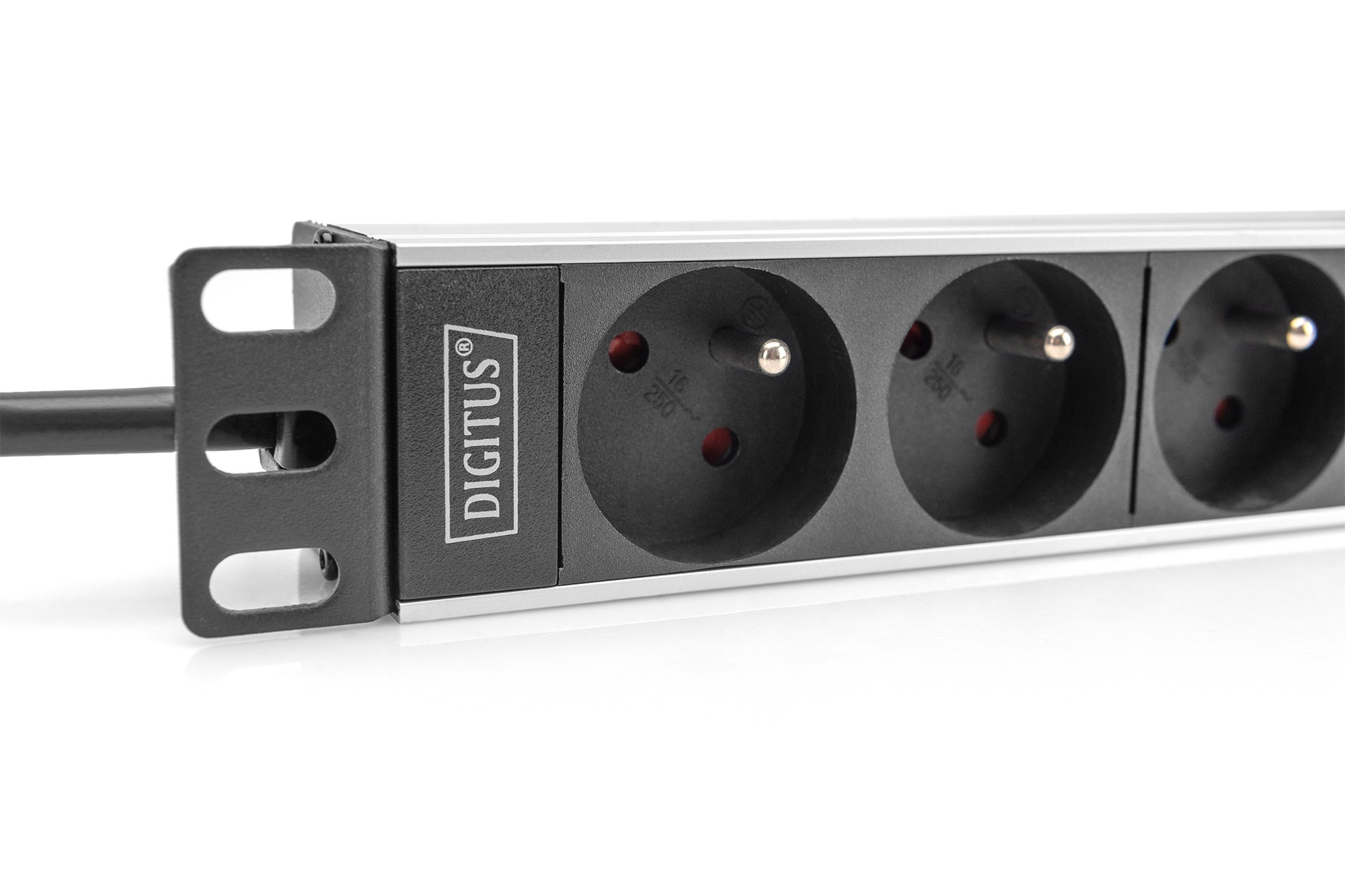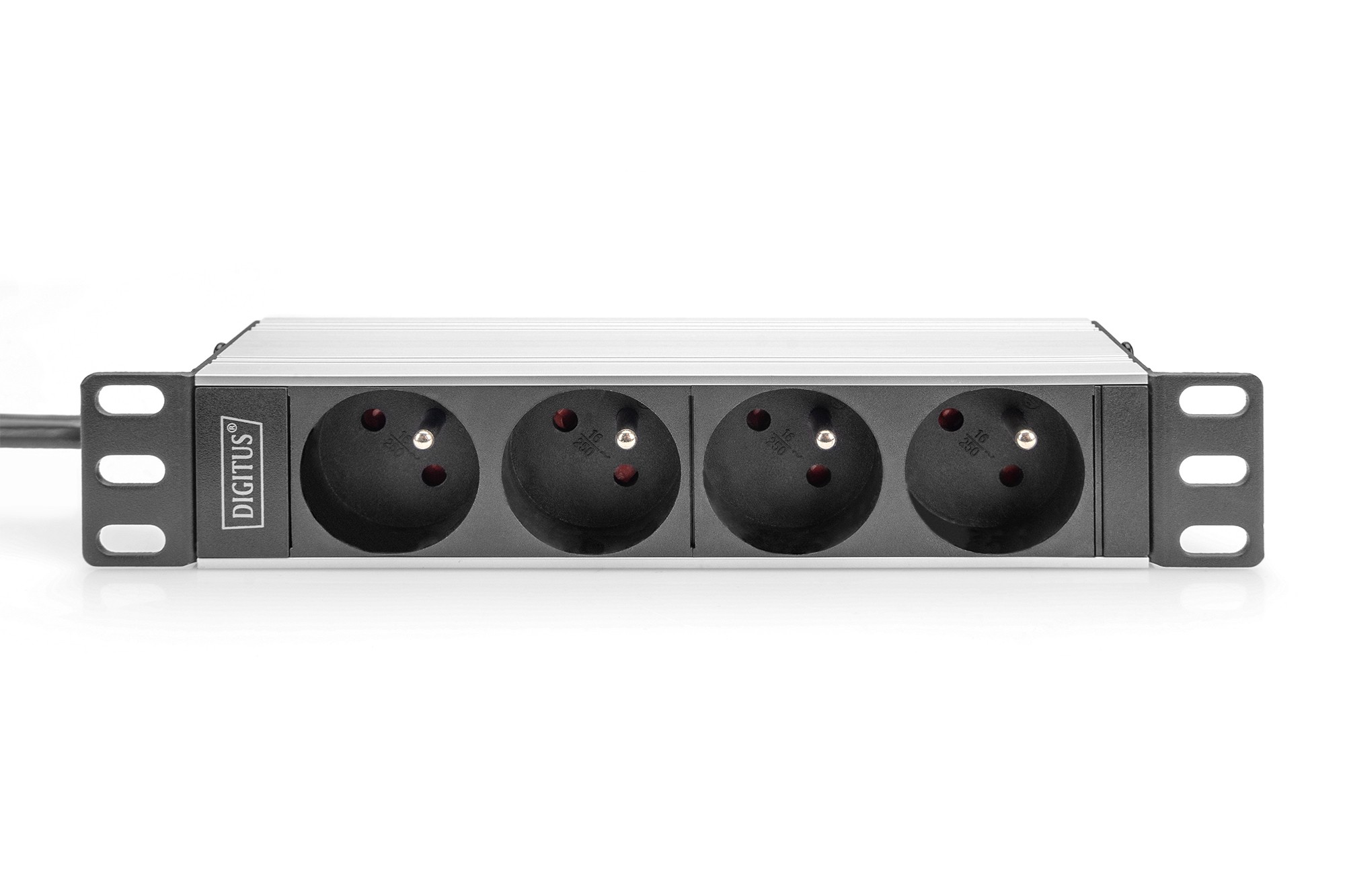 Digitus Presa da 10" con profilo in alluminio, prese a 4 vie CEE 7/5, 1U, Montaggio a rack, Orizzontale, Alluminio, 4 presa(e) AC, Tipo E
