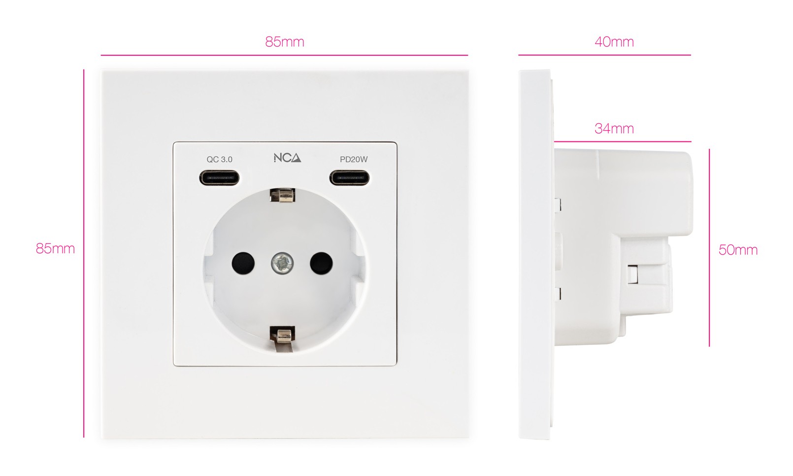 Recensioni Presa da parete da incasso Nanocable tipo Schuko - 2xUSB-C PD - 3,4 A - Bianco
