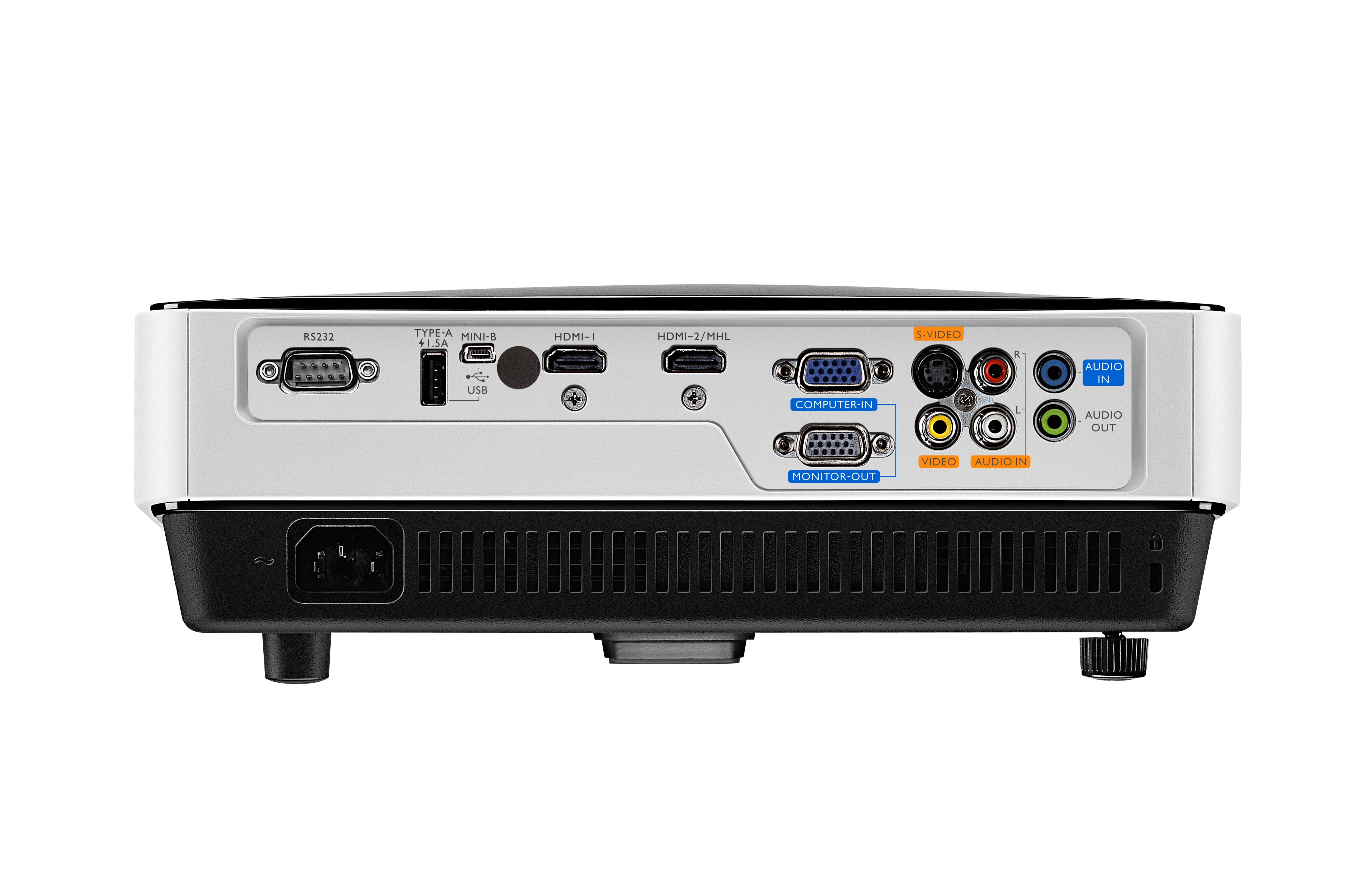 Benq MX631ST. Luminosità proiettore: 3200 ANSI lumen, Tecnologia di proiezione: DLP, Risoluzione nativa del proiettore: XGA (1024x768). Tipo di sorgente luminosa: Lampada, Durata della sorgente luminosa: 4500 h, Durata della sorgente luminosa (modalità risparmio): 6000 h. Lunghezza focale: 10.2 - 12.24 mm, Range di apertura (F-F): 2,6 - 2,78, Rapporto di Zoom: 1.2:1. Formato video analogico: NTSC, PAL, SECAM, Formati 3D supportati: Frame sequenziale, Risoluzioni grafiche supportate: 640 x 480 (VGA), 1600 x 1200 (UXGA). Tipo interfaccia seriale: RS-232, Versione HDMI: 1.4a, Connettore USB: Mini-USB B, USB tipo A