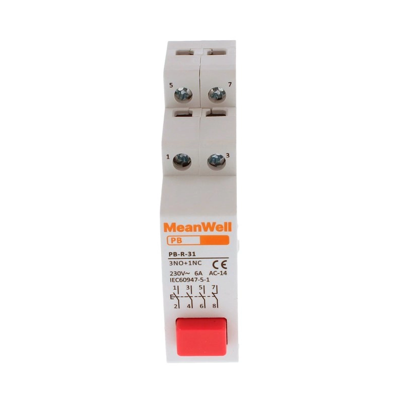 MeanWell Pulsante Modulare con Spia Luce LED Rosso per Quadri Elettrici con Guida DIN, 1 Modulo 3NO+1NC 16A AC 230V IP20 Certificato IEC60947