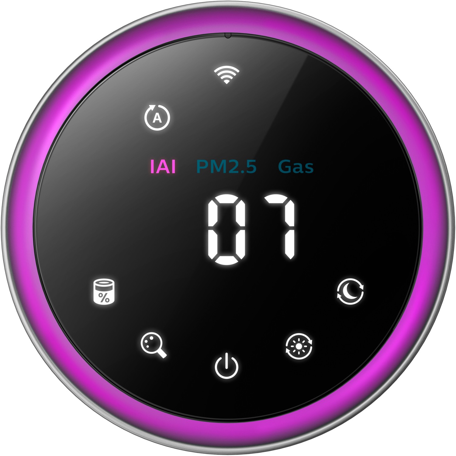 Controlla in un istante ed in tempo reale la qualità dell'aria nella tua casa. Il display mostra il livello di allergeni, gas e PM2.5 in formato numerico, oltre che con un intuitivo anello colorato.
