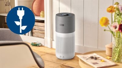 Grazie al design a basso consumo energetico, il purificatore d'aria funziona a una potenza massima di 55 W, l'equivalente di una lampadina standard.
