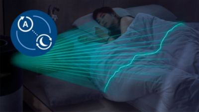 Oltre alla normale modalità Sleep, è disponibile una speciale modalità Sleep allergie che fornisce protezione durante la notte. Questa modalità rileva efficacemente la polvere allergenica presente nell'aria e imposta il dispositivo su una velocità più elevata, garantendo fino al 40% di aria pulita in più durante la notte (11), mantenendo al contempo un basso livello di rumorosità.