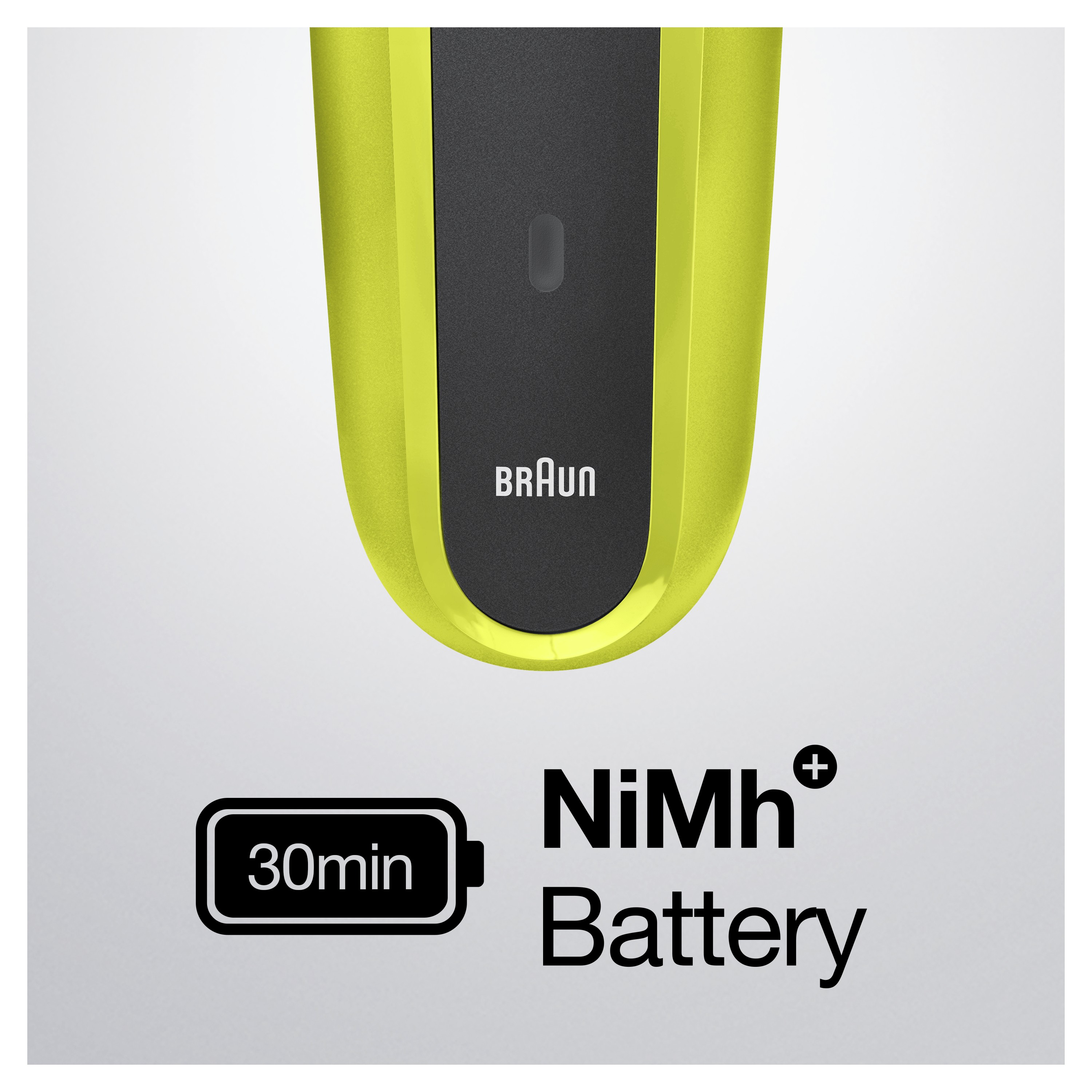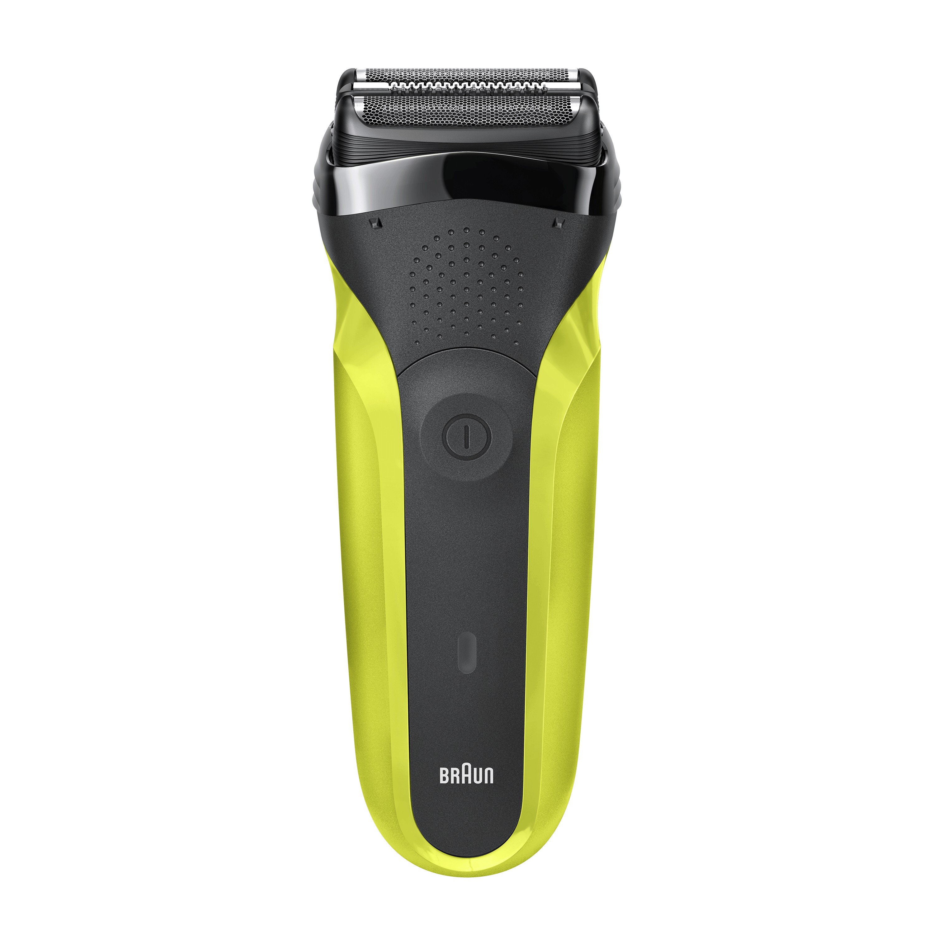 Braun Series 3 300 Rasoio Elettrico Barba, Nero/Verde Elettrico, Rasoio, Pulsanti, Nero, Verde, LED, Carica, Potenza, CA/Batteria