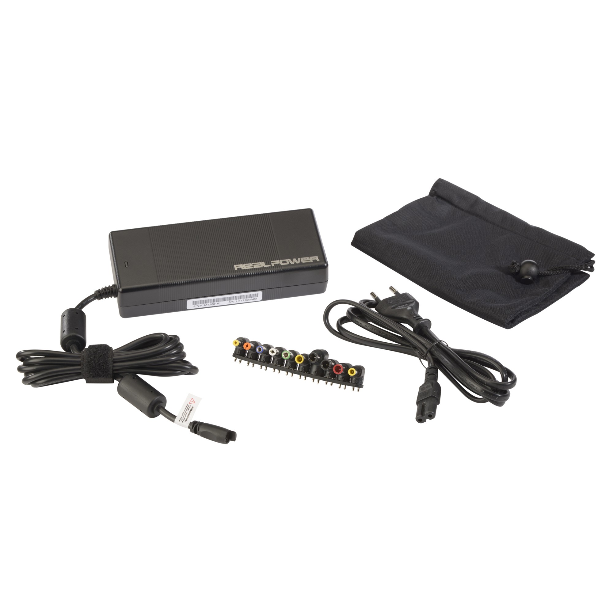 RealPower 140474. Utilizzo: Computer portatile, Tipo alimentazione: Interno, Voltaggio di ingresso: 100 - 240 V. Colore del prodotto: Nero. Peso: 254 g. Larghezza imballo: 240 mm, Profondità imballo: 165 mm, Altezza imballo: 80 mm. Alimentazione: 40 W