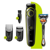 Braun 81705168. Lunghezza minima del taglio: 0,5 mm, Lunghezza massima del taglio: 3,9 cm, Avanzamento preciso: 0,5 mm. Colore del prodotto: Nero, Verde, Paese di origine: Cina. Alimentazione: CA/Batteria, Tempo di funzionamento: 80 min, Tipo batteria: Batteria integrata. Peso: 330 g, Peso della batteria: 22 g. Larghezza imballo: 57 mm, Profondità imballo: 137 mm, Altezza imballo: 282 mm