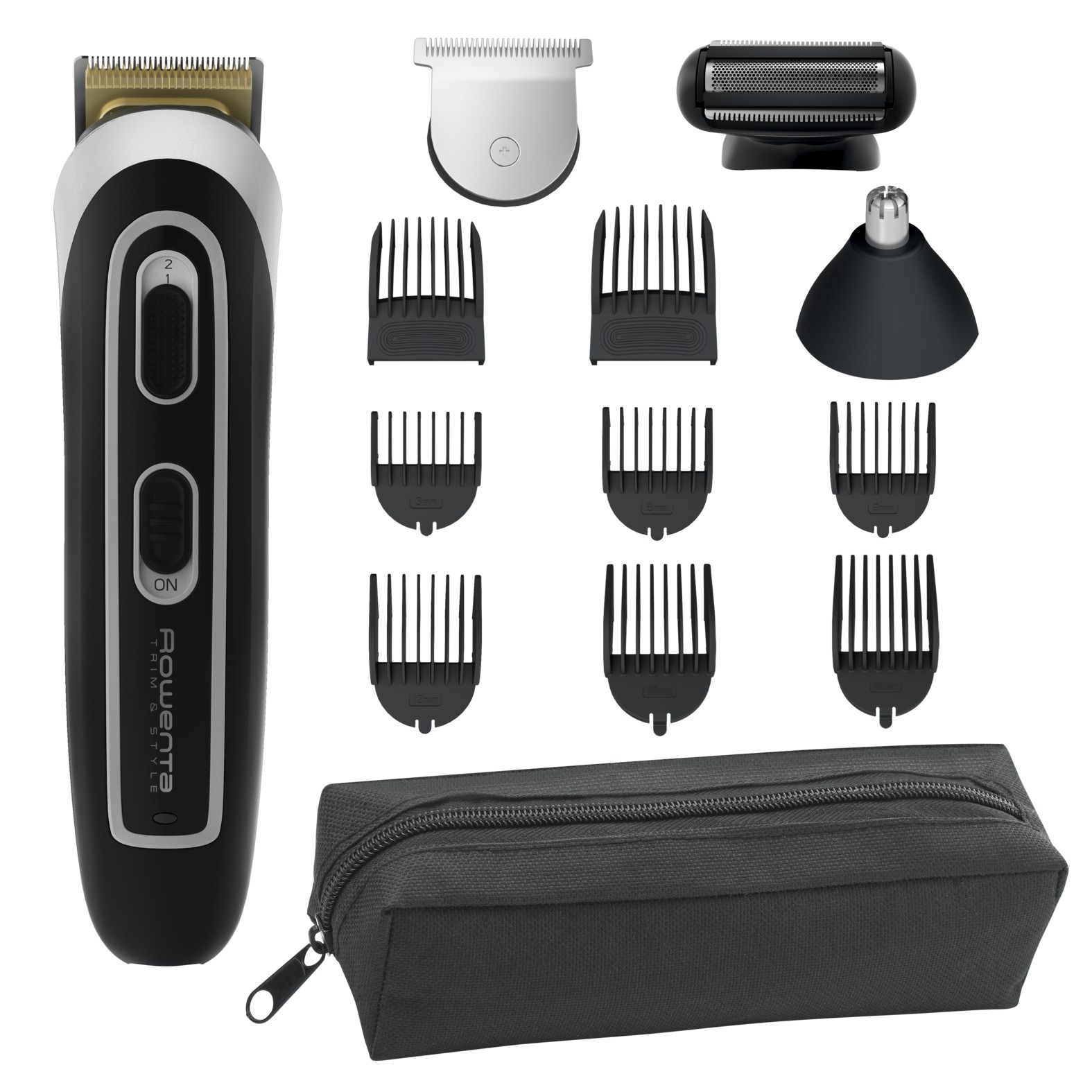 Rowenta TRIM & STYLE TN9140. Colore del prodotto: Nero, Argento, Lunghezza minima del taglio: 0,5 mm, Lunghezza massima del taglio: 4,2 cm. Alimentazione: Batteria, Tipo batteria: Batteria integrata, Tensione di ingresso AC: 100-240 V. Larghezza: 158 mm, Profondità: 40 mm, Altezza: 40 mm. Pettini: Barba, Orecchio, Testina, Naso. Larghezza imballo: 140 mm, Profondità imballo: 66 mm, Altezza imballo: 234 mm