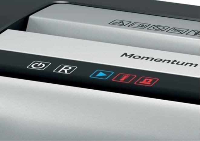Rexel Momentum X415. Tipo di sminuzzamento: Triturazione incrociata, Dimensione di sminuzzamento: 4 x 40 mm, Volume cestino: 23 L. Larghezza: 370 mm, Profondità: 279 mm, Altezza: 465 mm