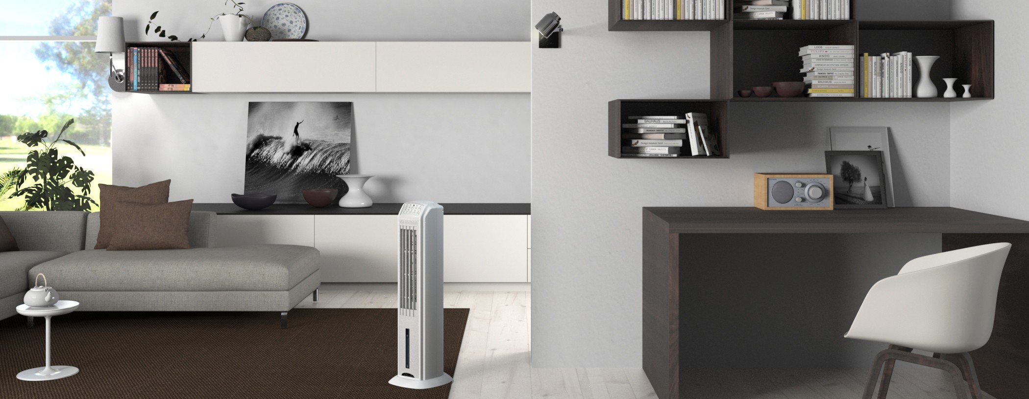 Il raffrescatore a torre, sottile e potente adatto a qualsiasi ambiente. Grazie alla speciale tecnologia tangenziale di ventilazione è in grado di raffrescare silenziosamente ampi ambienti: un eccezionale rapporto dimensioni/potenza. Pelèr 4 è il raffrescatore SUPER SLIM caratterizzato da un design moderno e raffinato. La sua tanica è molto capiente (fino a 4 Lt.) e si può riempire con acqua o con ghiaccio per raffrescare l'ambiente. Pelèr 4 è pensato come prodotto alternativo al tradizionale ventilatore assiale in quanto la sua portata d'aria raggiunge il valore massimo di 558 m3/h in totale silenziosità grazie al silent system. Il pannello evaporativo in tessuto viene imbevuto di acqua prelevata dalla tanica e grazie al filtro antipolvere e allo ionizzatore l'acqua che viene fatta evaporare per raffrescare l'ambiente risulta più pulita.