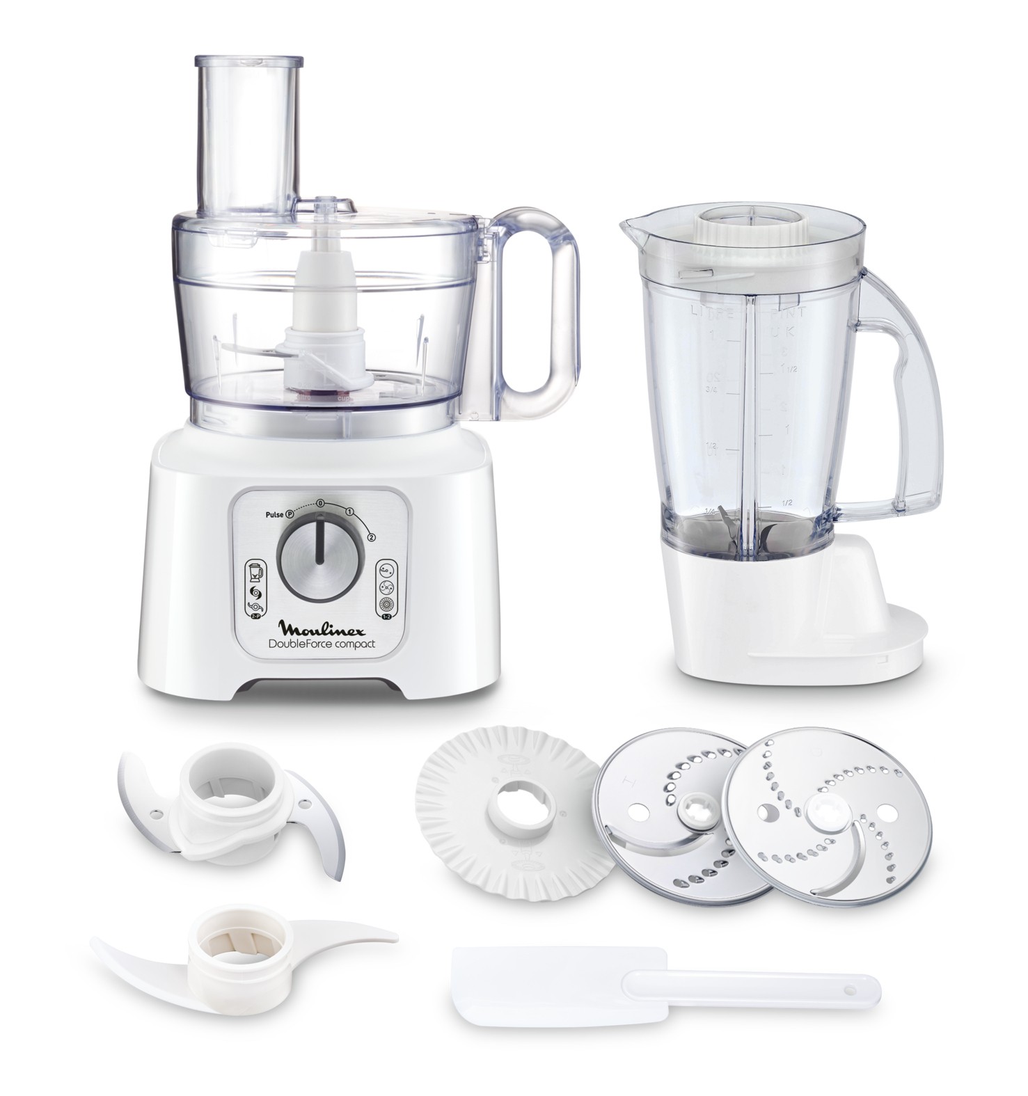 Moulinex ROBOT DA CUCINA MULTIFUNZIONE DOUBLE FORCE COMPACT, 2,2 L, Bianco, Argento, Grigio, Manopola, 1,25 L, Impasto, Miscelatura, Francia