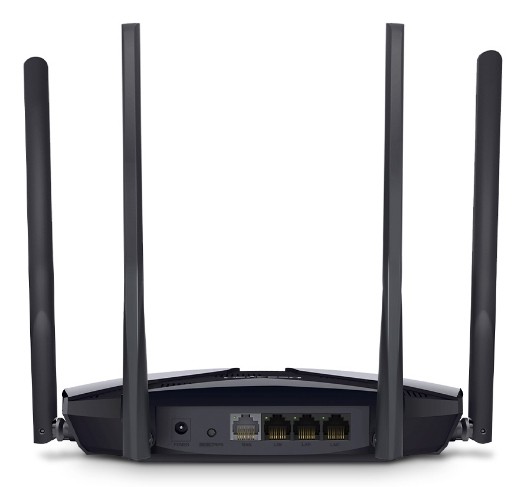 Mercusys MR80X. Tipo di connessione WAN: RJ-45. Banda Wi-Fi: Dual-band (2.4 GHz/5 GHz), Wi-Fi standard: Wi-Fi 6 (802.11ax), Intervallo di trasferimento dei dati WLAN (max): 3000 Mbit/s. Tipo di interfaccia LAN Ethernet: Gigabit Ethernet, Velocità trasferimento Ethernet LAN: 10,100,1000 Mbit/s, Tecnologia di cablaggio: 10/100/1000Base-T(X). Algoritmi di sicurezza supportati: WEP, WPA, WPA2, WPA3, Sicurezza firewall: SPI Firewall, IP and MAC Address Binding, Funzionalità NAT: Port Forwarding, Port Triggering, UPnP, DMZ. Tipo di prodotto: Router da tavolo, Colore del prodotto: Nero, Indicatori LED: LAN, WAN