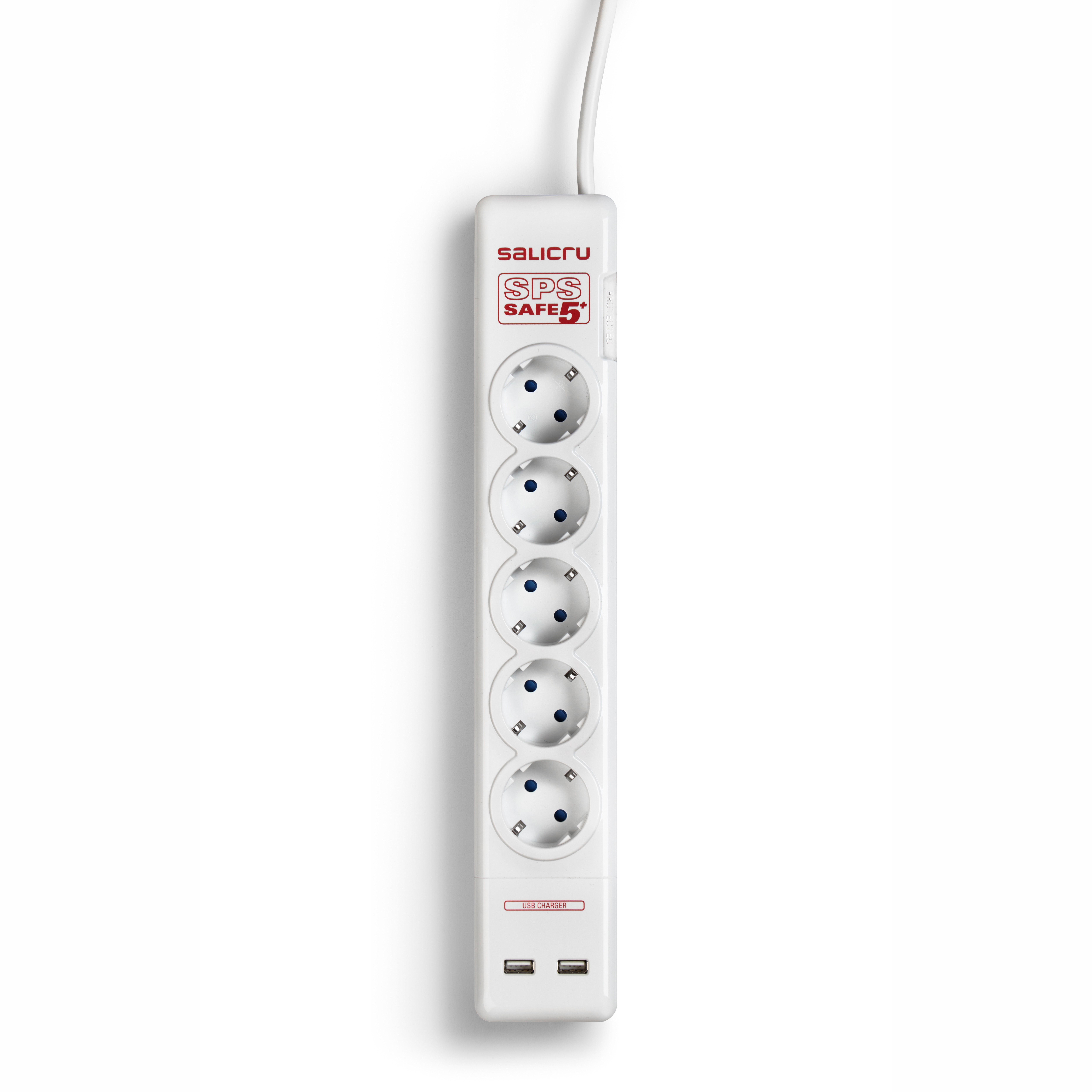 Salicru 680BA000002. Valutazione sovraccarico energetico: 306 J, Quantità prese AC: 5 presa(e) AC, Tipo di uscita AC: Tipo F. Colore del prodotto: Bianco, Tempo di risposta: 1 ms. Lunghezza cavo: 1,5 m, Peso: 610 g, Larghezza: 64 mm. Certificazione: IEC-60884-1; EN-61643-11; EN-61643-21, ISO 9001, ISO 14001. Numero di prodotti inclusi: 1 pz