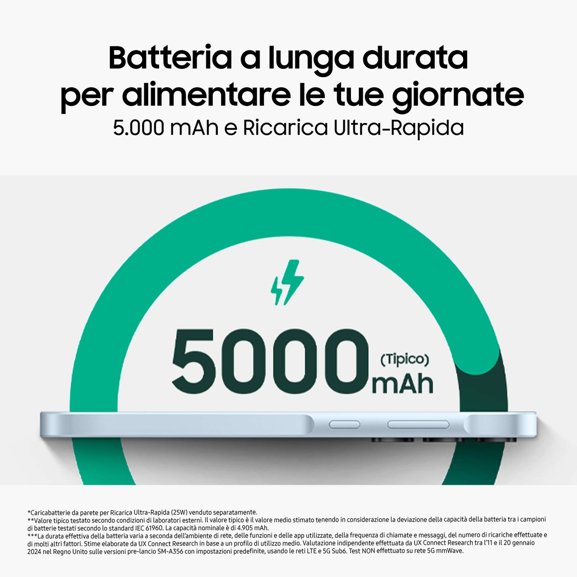 La tua mobilità non ha fine con la batteria da 5.000 mAh (capacità tipica)a lunga durata e la ricarica ultra-rapida.