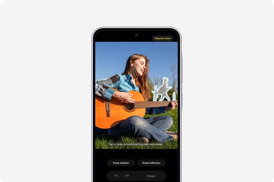 Trasforma il tuo scatto in una perfetta opera d'arte. La funzione migliorata Gomma oggetto individua, suggerisce e rimuove senza sforzo le persone indesiderate sullo sfondo, mentre Suggerimenti di modifica propone consigli creativi per dare il tocco finale.