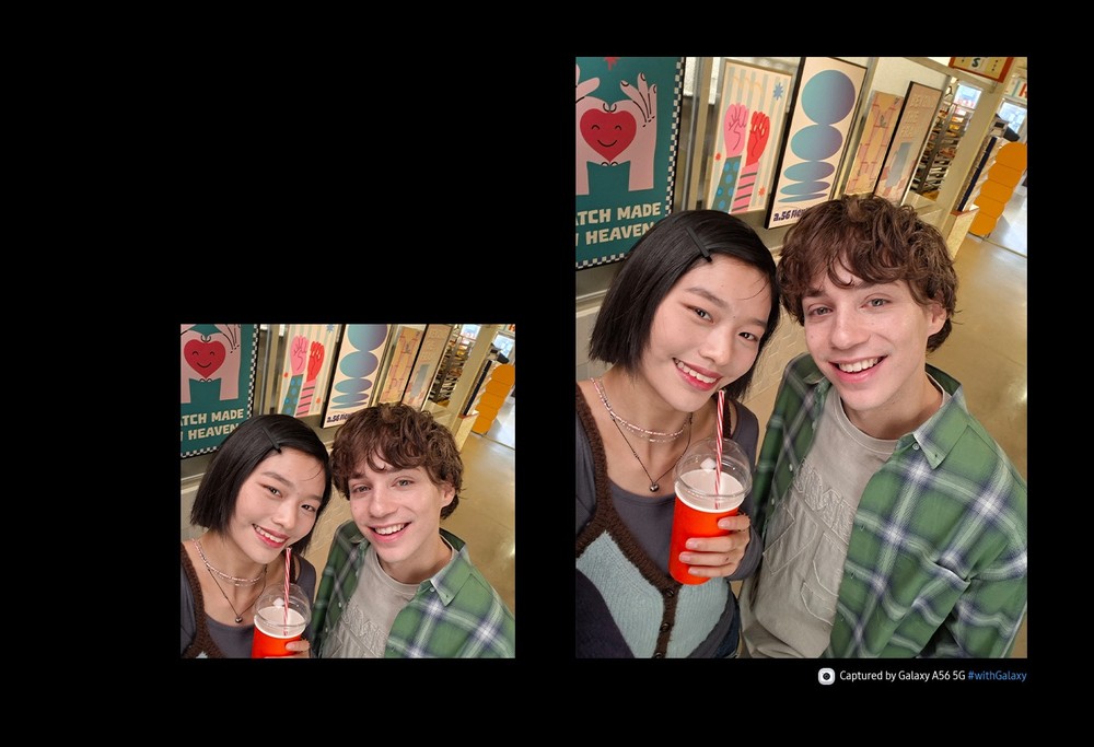 Ora puoi condividere i tuoi selfie così come sono. La fotocamera frontale migliorata da 12 MP del Galaxy A56 5G scatta foto dai colori vividi e prive di sfocature.
