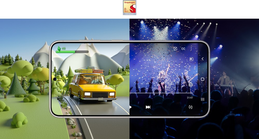 Ti presentiamo il nuovo Galaxy S23, pensato per le tue imprese epiche scattate con Nightography e dotato del potente processore Snapdragon® 8 Gen 2.1 La fotocamera grandangolare da 50 MP con sensore ad alta risoluzione e il potente processore Snapdragon® 8 Gen 2 combinano i fotogrammi rapidamente per estrarne da ognuno i bit, così da trasformare ciascuno di essi in una foto ad alta risoluzione. I selfie notturni e i video in contesti bui sono resi più luminosi dalla fotocamera per selfie da 12 MP. Con 3.900 mAh2 di capacità tipica, Galaxy S23 ha una durata della batteria migliorata rispetto alla precedente serie Galaxy S.3 Oltre al display Dynamic AMOLED 2X super fluido, Galaxy S23 è dotato del potente processore Snapdragon® 8 Gen 2 pensato per Galaxy, che ottimizza i tempi di caricamento e il consumo della batteria. Gioca e trasmetti in streaming da dove vuoi grazie alla visibilità adattiva negli ambienti esterni, che garantisce colori e brillantezza ottimali in qualsiasi condizione di luminosità. 1_Snapdragon è un prodotto di Qualcomm Technologies, Inc. e/o delle sue controllate. Snapdragon è un marchio o un marchio registrato di Qualcomm Incorporated. 2_Valore tipico testato secondo condizioni di laboratori esterni. Il valore tipico è il valore medio stimato considerando la deviazione nella capacità della batteria tra i campioni di batterie testati ai sensi della norma IEC 61960. La capacità nominale (minima) è di 3785 mAh per Galaxy S23, 4565 mAh per Galaxy S23+ e 4855 mAh per Galaxy S23 Ultra. La durata della batteria varia in base ad ambiente di rete, modalità d'uso e altri fattori. 3_Rispetto a Galaxy S22 e S22+.