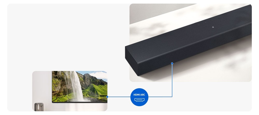 Utilizzando la porta HDMI ARC della soundbar potrai collegarla a un dispositivo esterno e ascoltare contenuti audio profondi e vibranti senza rinunciare alla qualità.