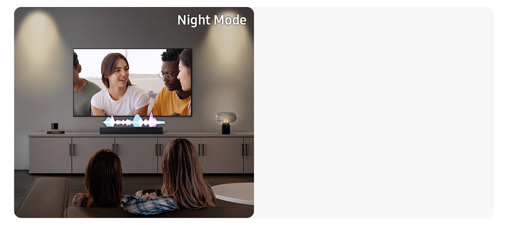 Guarda la TV anche di notte senza svegliare chi è con te. La modalità notturna comprime i bassi per ridurre i decibel, per un'esperienza di ascolto ovattata con un audio estremamente nitido.