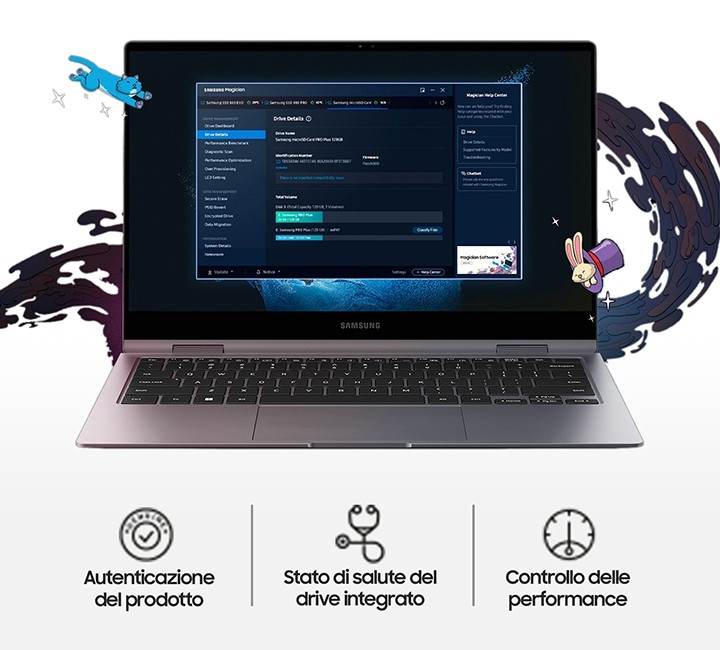 Ottieni il massimo da EVO Plus con il software Samsung Magician, una suite di strumenti di gestione facili da usare che migliorano le prestazioni della scheda di memoria. Potrai verificare l'autenticità dei prodotti, monitorare le condizioni delle unità e confrontare le prestazioni.