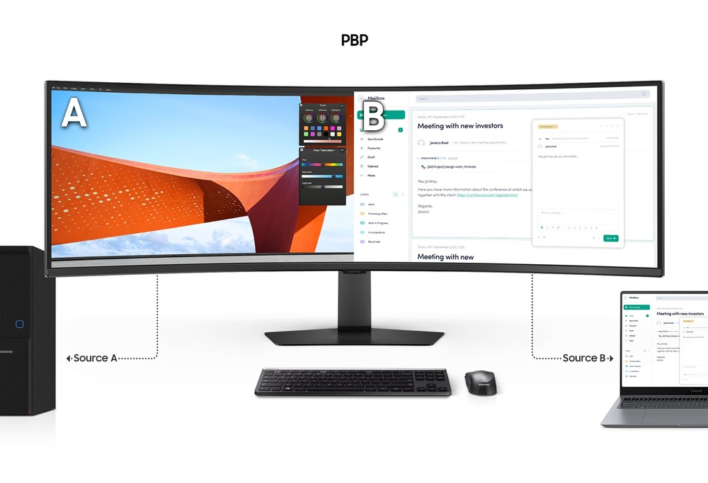 Sfrutta tutte le potenzialità del tuo schermo diviso in due e svolgi più attività contemporaneamente con la doppia visualizzazione. Picture-by-Picture divide lo schermo a metà, utilizzando due ingressi con la loro risoluzione nativa per funzionare perfettamente su più dispositivi.