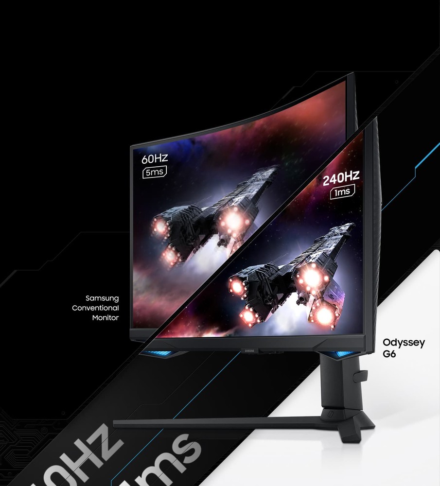 Samsung Odyssey Monitor Gaming G6 da 27'' QHD Curvo, 68,6 cm (27"), 2560 x 1440 Pixel, Quad HD, LCD, 1 ms, Nero