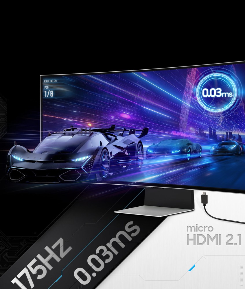 Con un tempo di risposta di 0,03 ms (GtG) e una frequenza di aggiornamento di 175 Hz, potrai reagire alle mosse del tuo avversario con una rapidità mai vista prima su un monitor Odyssey.