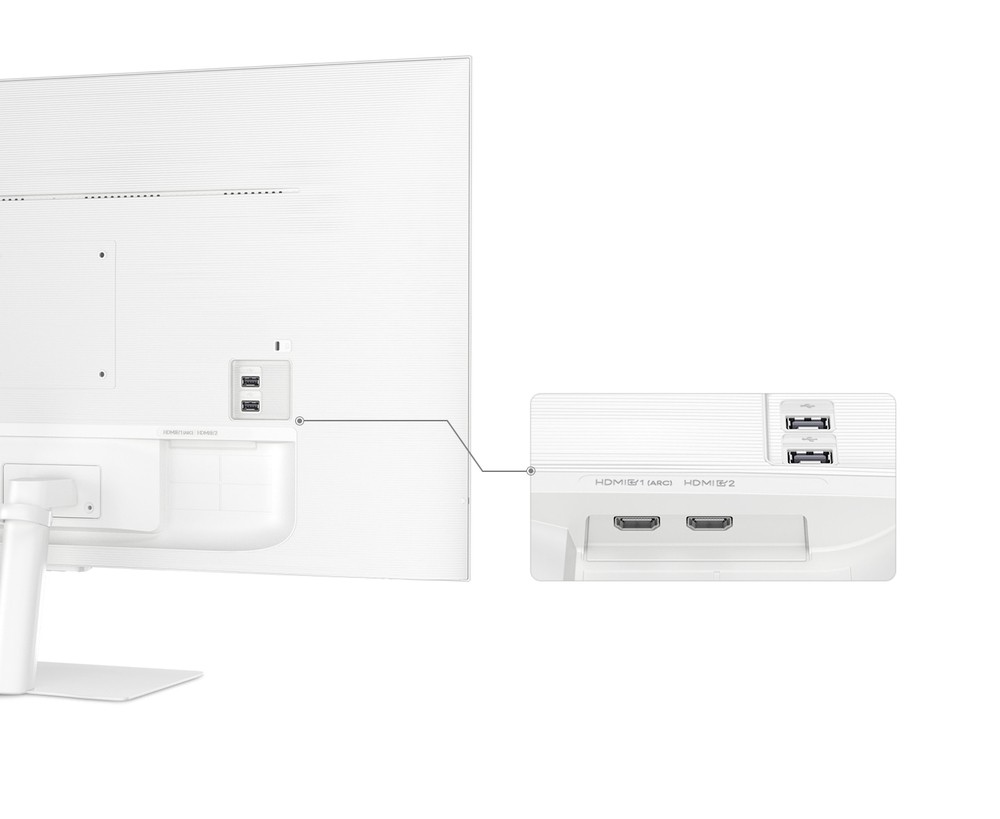 Collegati al tuo Smart Monitor e assumi il pieno controllo di tutte le tue periferiche contemporaneamente – mouse e tastiera wireless, cuffie, schermi aggiuntivi e molto altro ancora. Con 2 porte USB-A e 2 porte HDMI puoi organizzare al meglio la tua postazione, senza inutili seccature.