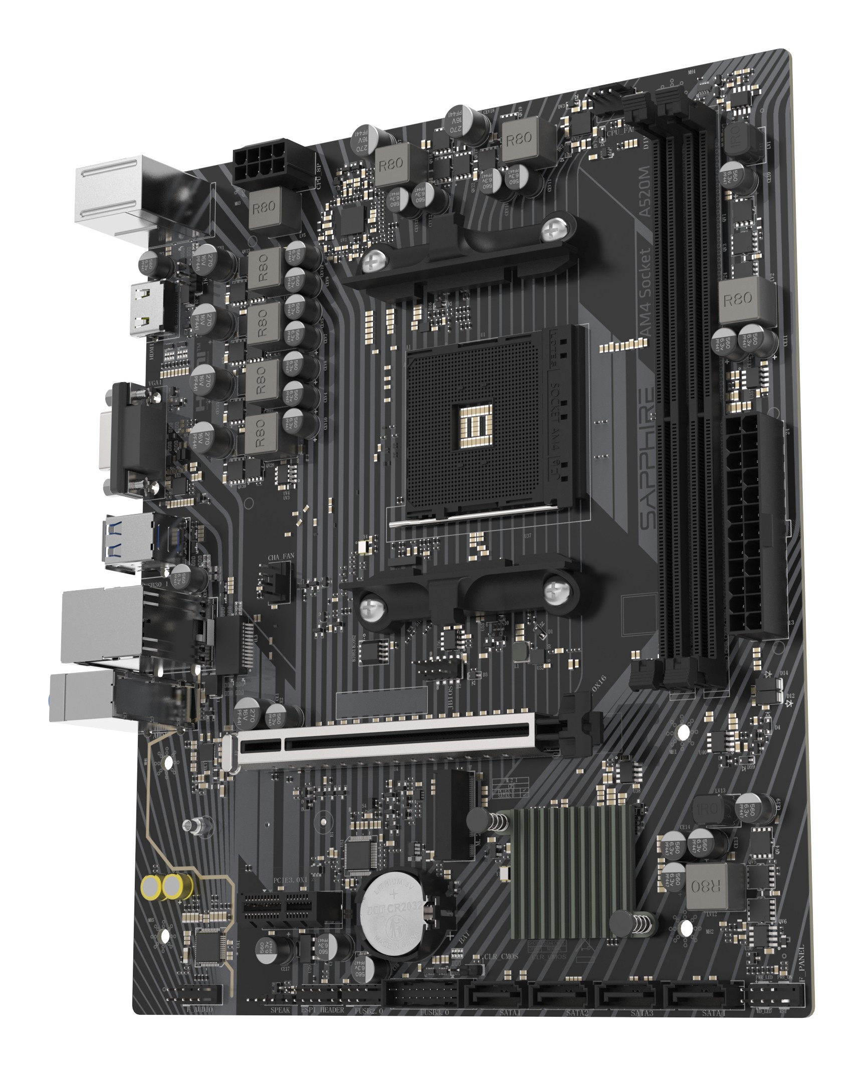 Sapphire A520M-E, AMD, Socket AM4, AMD Ryzen 3000 Series, AMD Ryzen 4000 Series, AMD Ryzen 5000 Series, Socket AM4, DDR4-SDRAM, 64 GB